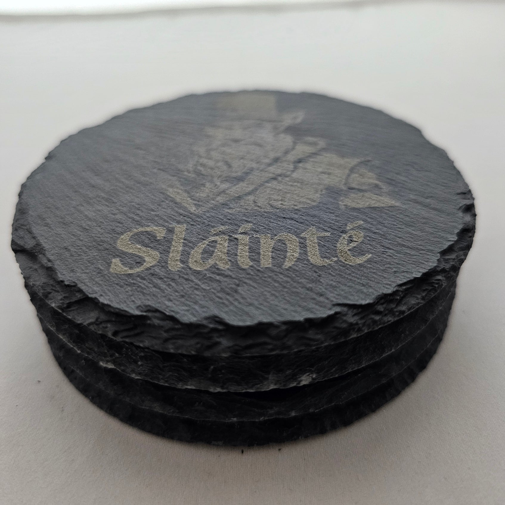Custom Laser Engraved Slate Coaster Set – 4 Inch Round (Set of 4)
