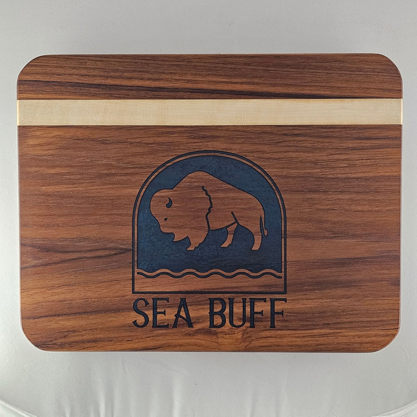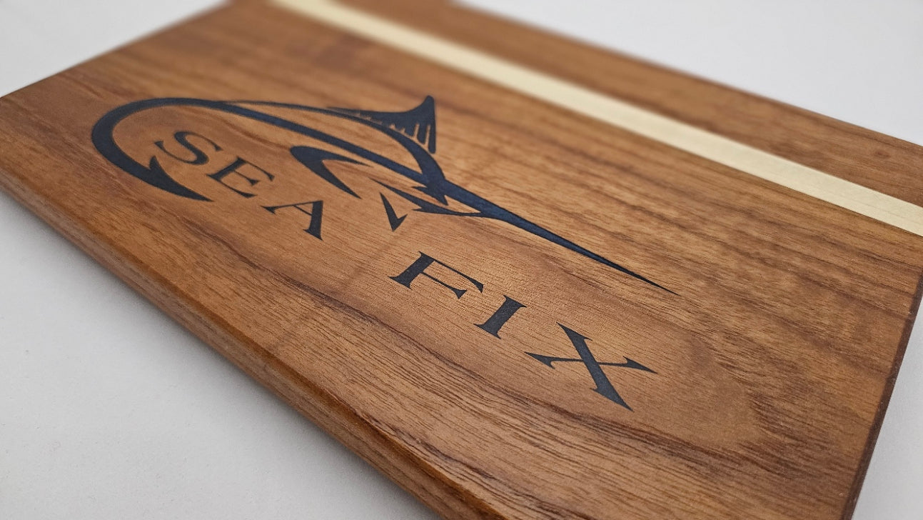 Handmade Custom Laser Engraved Teak and Holly Cutting Board with Resin Inlay – (approx)13" x 10" x 7/8"
