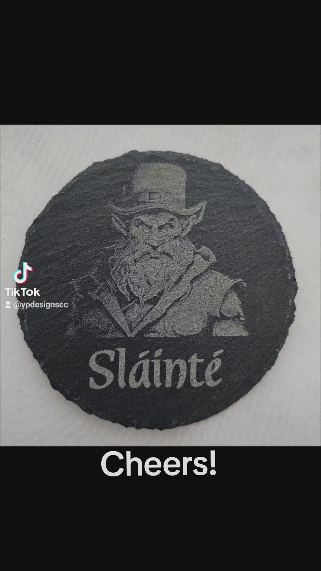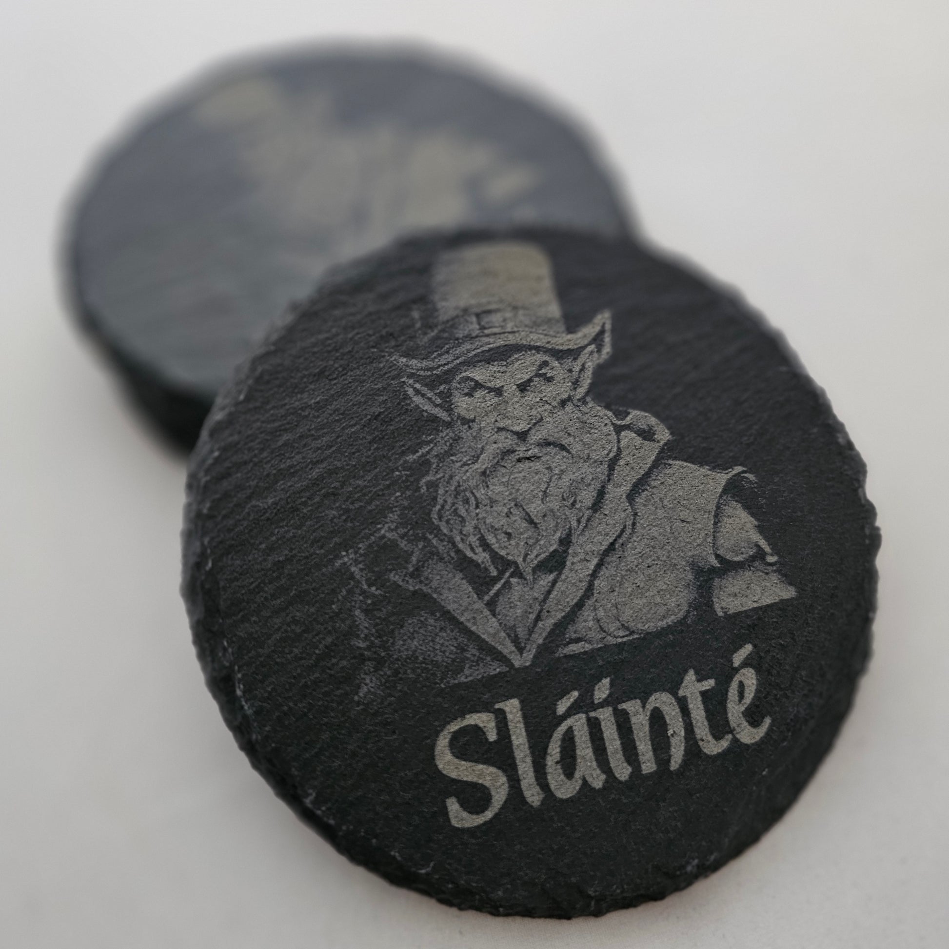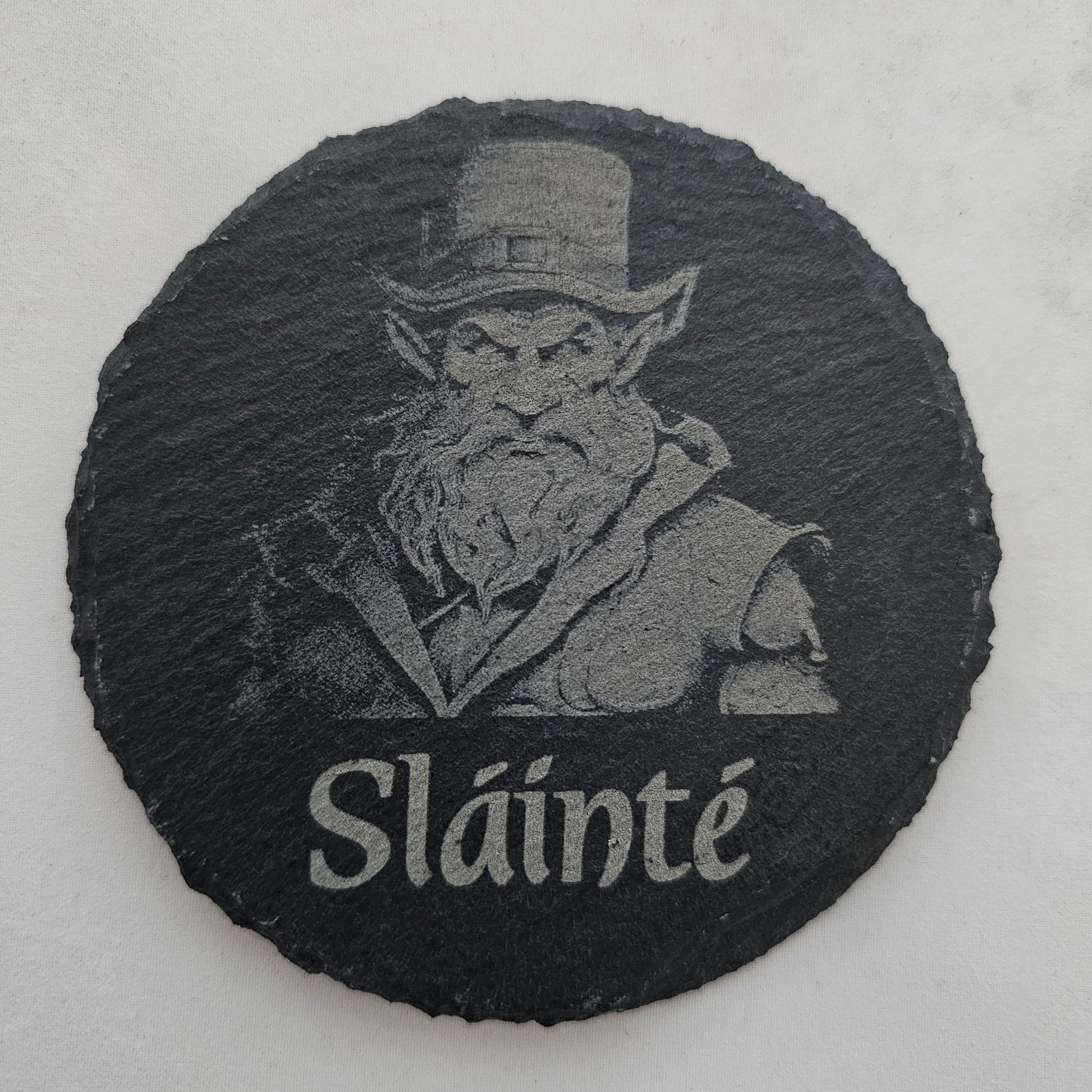Sláinte Leprechaun: Laser-Engraved Slate Coaster